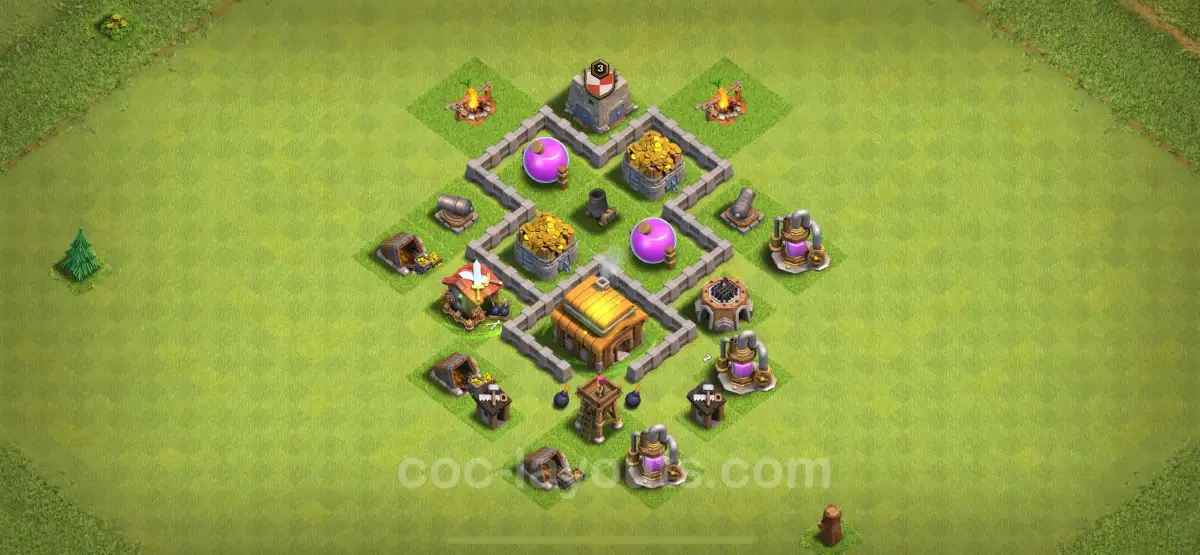 The design for a Town Hall 3 base includes specific features and structures that enhance protection against enemy attacks. Players are encouraged to prioritize the placement of key defensive buildings such as cannons and archer towers to defend vital resources. Centralizing the Town Hall within the base layout is crucial, as it forces attackers to navigate through defenses to reach it, thereby increasing the likelihood of resource preservation.