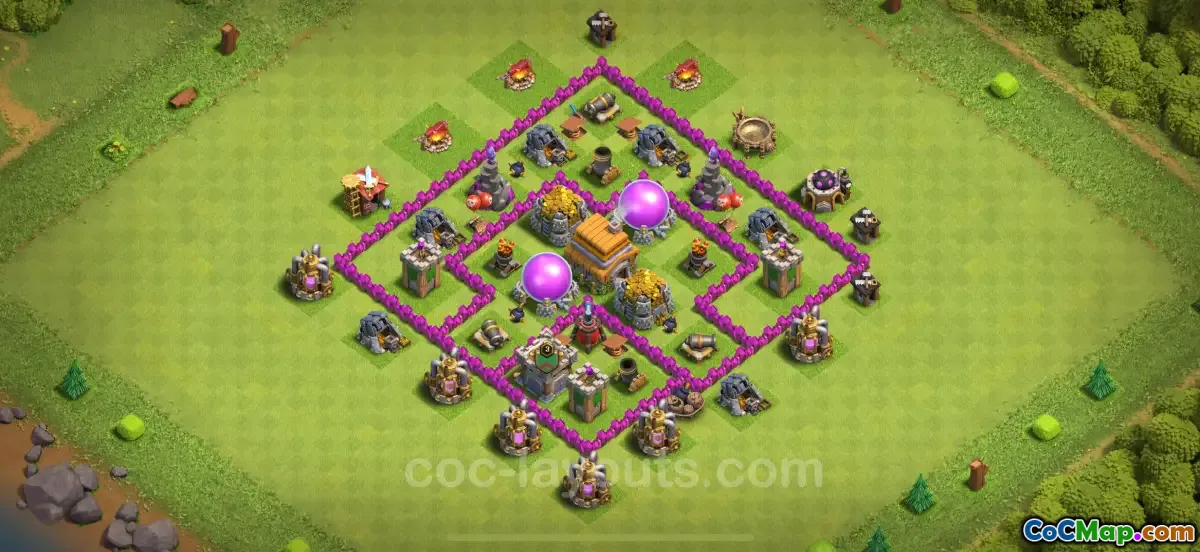 The Town Hall Level 6 (TH6) base design for Clash of Clans (COC) is strategically tailored for optimal resource defense. This layout aims to protect resources effectively while deterring attackers seeking to earn trophies. By integrating various defensive structures and a clever arrangement, players can safeguard their hard-earned materials from raiders. The design focuses on providing a robust defense against a range of attacking strategies frequently used at this level.