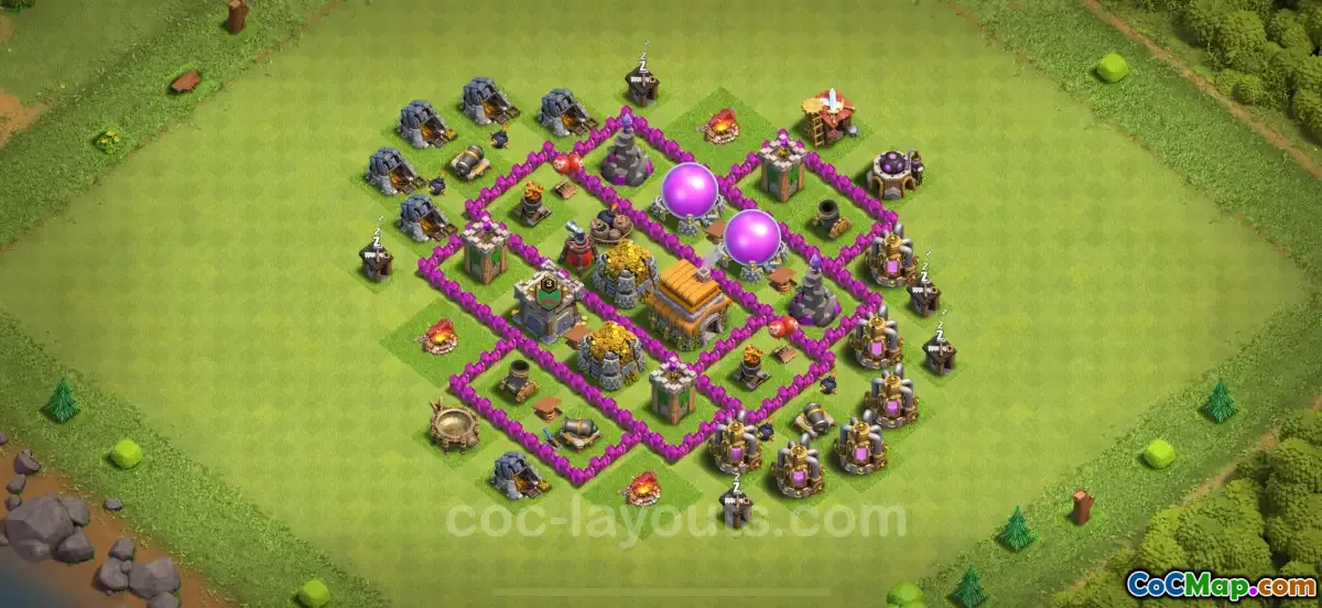 The design of a Town Hall Level 6 base in Clash of Clans has been strategically crafted to provide effective protection for resources while also presenting challenges to attackers. The layout emphasizes a strong defense against common strategies employed by players in search of easy loot, thereby minimizing the potential for resource loss during raids. One of the key features of this base design is its ability to discourage two-star attacks, which are often aimed at gaining both the Town Hall and additional stars from destroying other structures.