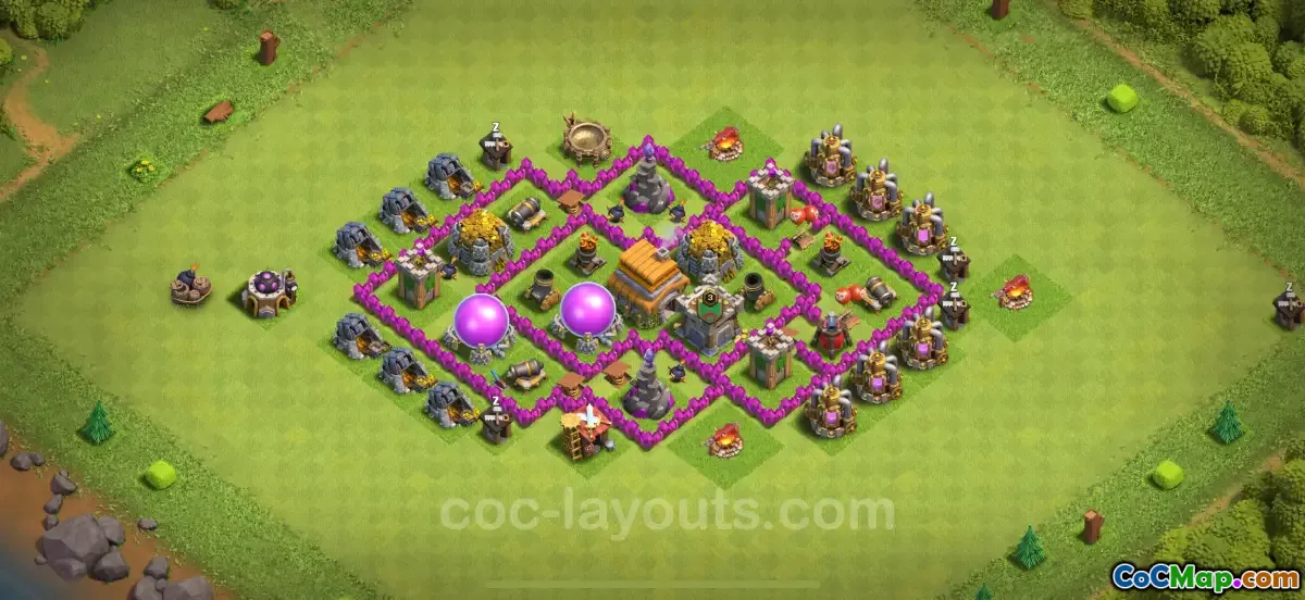 The key to a successful Town Hall 6 base is integrating defensive structures in a way that provides maximum coverage. Players often use a mix of walls, traps, and defensive buildings to form a protective barrier around crucial resources like gold, elixir, and dark elixir. This design typically features a central Town Hall surrounded by resource storages, making it difficult for attackers to secure all resources and earn three stars.