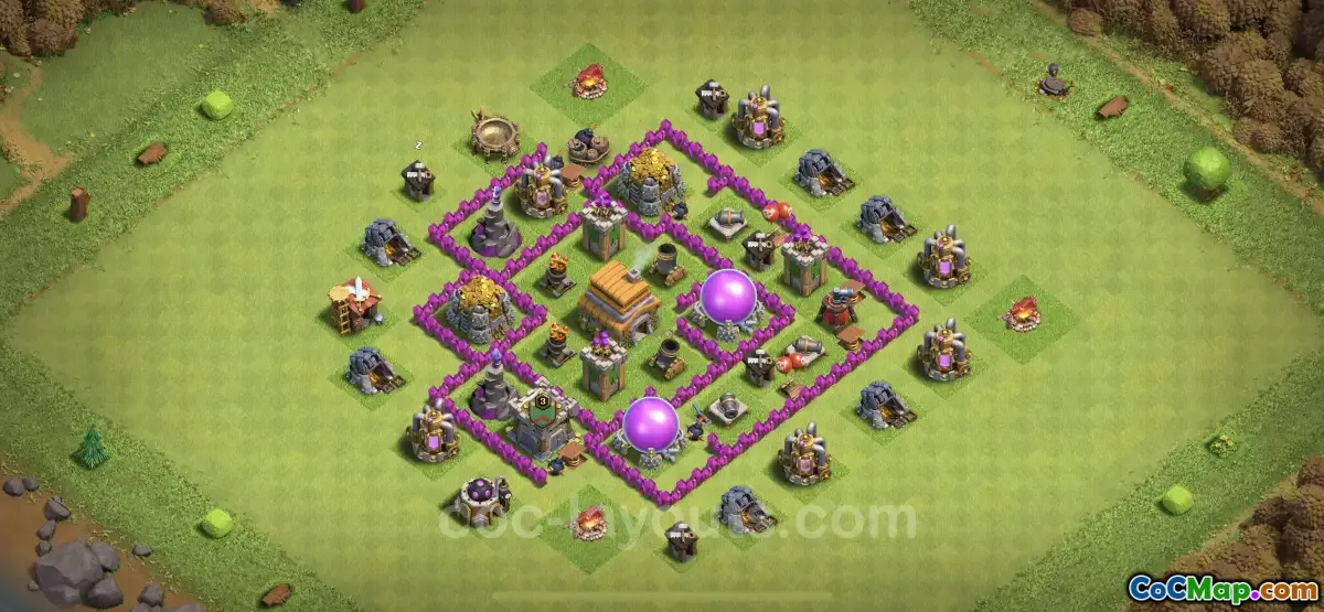Base TH6 is a specialized design for players in Clash of Clans who are at Town Hall Level 6. This particular base layout is built with a primary focus on defending resources effectively against enemy attacks. One of the key features of this design is its ability
