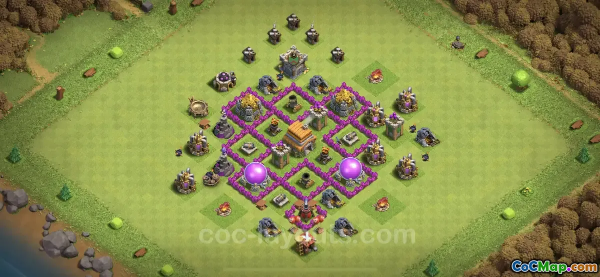 The TH6 Base design in Clash of Clans is specifically crafted with defensive strategies in mind, making it suitable for trophy collecting. At this Town Hall level, players need to prioritize their defenses to protect resources while maintaining a competitive standing in the trophy system. The right base layout can significantly reduce the effectiveness of enemy attacks, allowing players to retain their trophies and resources more effectively.