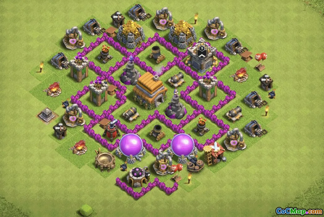 Copy base layout with link for Clash of Clans - town hall 6, home village, trophy base, war base, coc map, base layouts