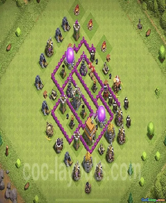 town hall 6, trophy/war base layout
