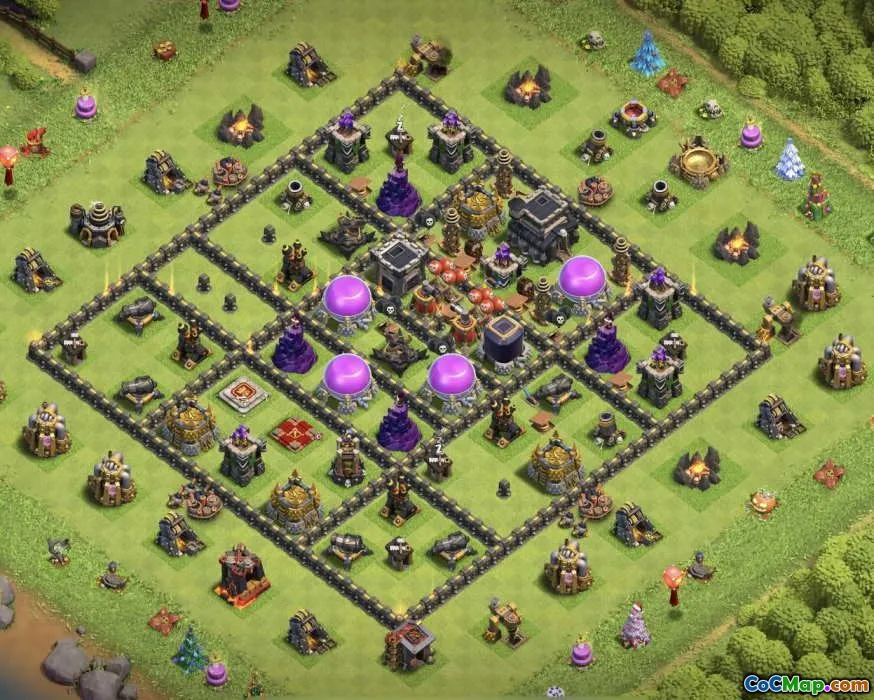 Copy base layout with link for Clash of Clans - town hall 9, home village, trophy base, war base, coc map, base layouts
