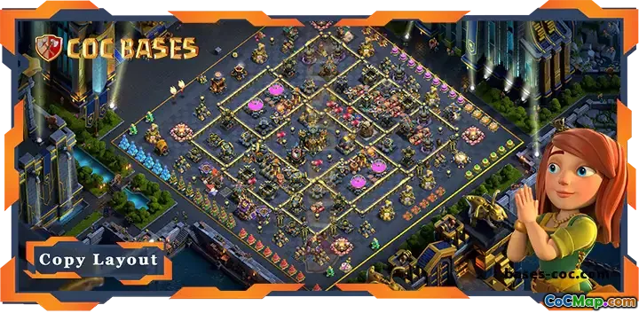 Featuring a balanced distribution of defenses, the layout optimizes the shielding of critical resources and Town Hall. Its unique design incorporates layers of walls and strategically positioned hero and Clan Castle placements, making it difficult for attackers to break through. This layout is perfect for consistent defense victories and protecting your resources in Clan Wars, ensuring you stay competitive against even the most skilled attackers.