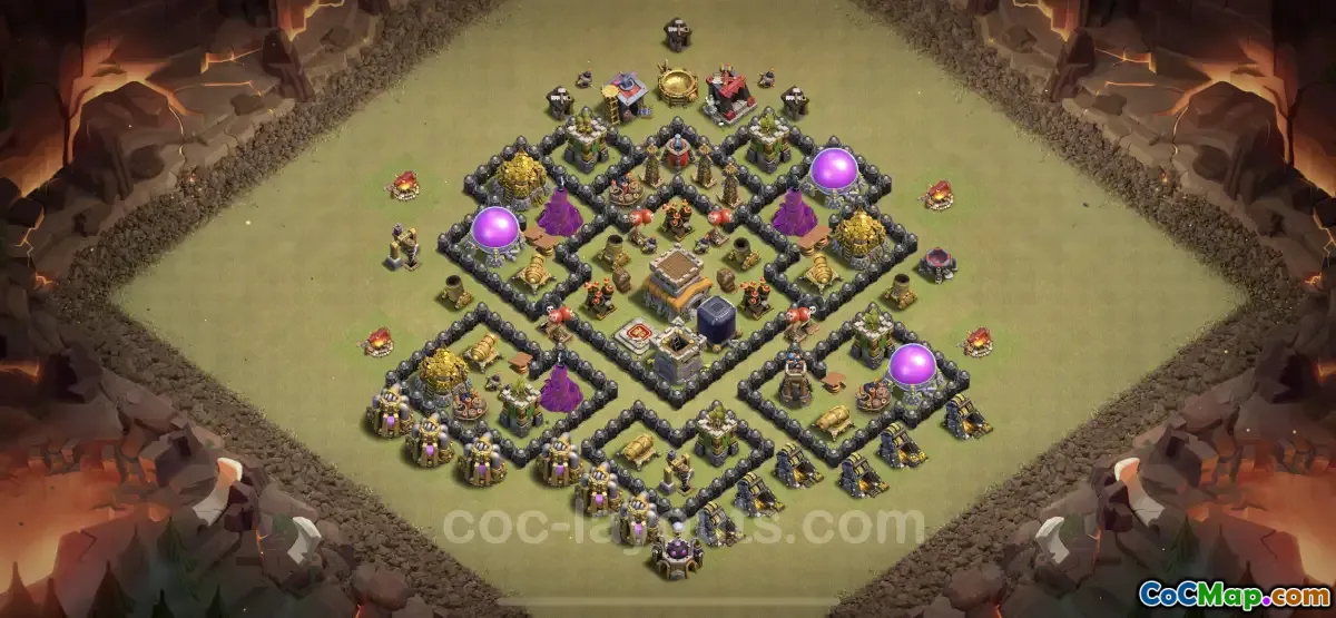 The "Best Anti 2 Stars War Base TH8" is designed with the primary objective of preventing opponents from achieving two stars during Clan Wars in Clash of Clans. This type of base layout is particularly effective for Town Hall level 8, providing a strategic design that complicates enemy attacks. The layout typically includes strong defensive structures and traps strategically positioned to intercept and distract attacking units, making it difficult for opponents to gain the necessary percentage for two stars.