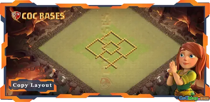 The layout features a strategic arrangement of walls encasing the Town Hall, which adds an extra layer of defense. These walls serve to prohibit enemy troops from easily accessing the center of the base, thus protecting the Town Hall from direct assaults. By creating a barrier with the walls, the design encourages attackers to expend more resources and time in order to breach through, often leading to frustration and inefficiency in their attack plans.