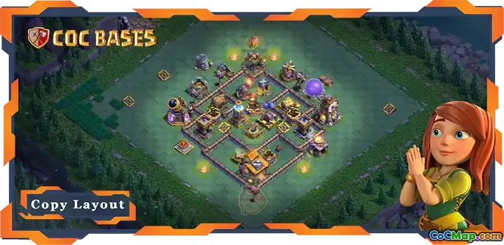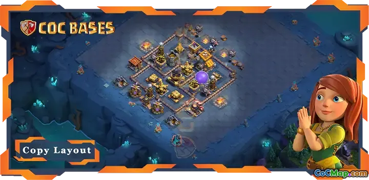 To enhance its defenses, the base incorporates walls that connect the central section with other parts of the layout. By securing the defense structures within these walls, the design forces enemies to divert their efforts and potentially expose themselves to concentrated fire from the central defenses. The strategic arrangement not only makes it harder for opposing players to reach the Builder Hall but also allows for a more effective use of defensive units throughout the entire base.