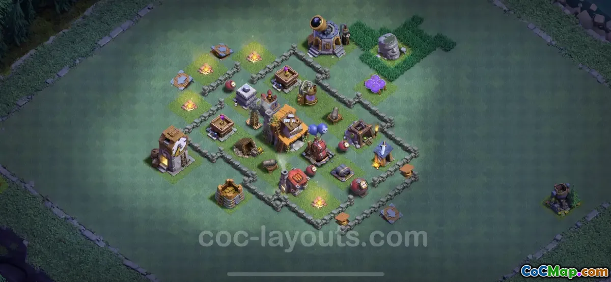 This Builder Hall Level 4 base is optimized for performance, incorporating various defensive structures and strategic placements that hinder an opponent's chances of achieving a three-star victory. The layout is designed to force attackers into challenging positions, where they may waste troops and resources. Players can replicate this base design by utilizing the provided link, which offers an exact copy for convenience, making it easier for them to implement it without having to design it from scratch.