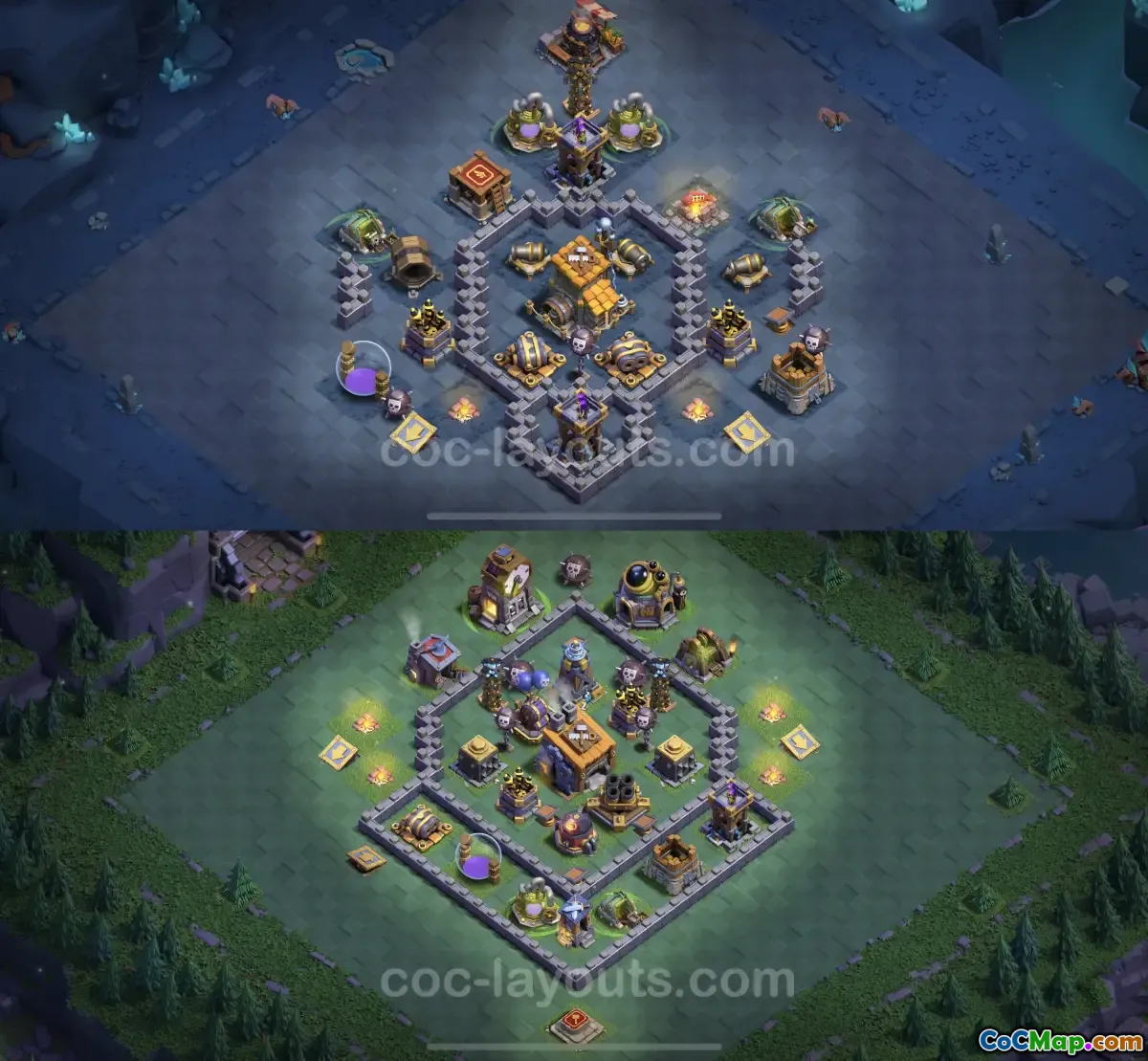 The Best Builder Anti 3 Stars Base Level 8 design for 2023 is a strategic layout intended for players in Clash of Clans aiming to protect their Builder's base from attacks. This base layout is designed specifically for Town Hall 8, balancing both defensive and offensive capabilities. It stands out for its effectiveness in minimizing damage during raids and ensuring that opponents have difficulty achieving a three-star victory against it.