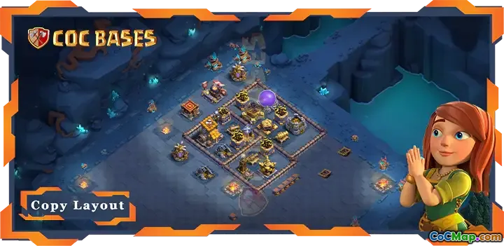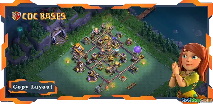 The Builder Hall Level 10 base in Clash of Clans is strategically designed to enhance overall defense effectiveness. In this particular layout, the Builder Hall is situated in the right corner of the base, allowing for a more compact and fortified configuration. This placement ensures that defensive structures are well distributed around the Builder Hall to maximize protection and create effective choke points for enemy troops.