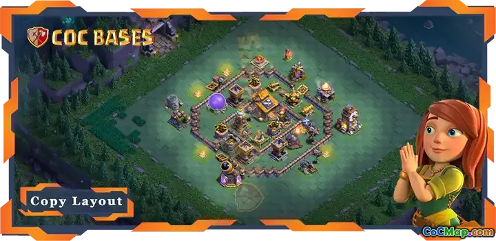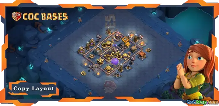 In Clash of Clans at Builder Hall Level 10, the design of an effective base is crucial for defending against attacks. The strategic placement of structures and defenses can significantly influence the outcome of gameplay. This particular base layout for BH10 features the builder hall located centrally, which is a common tactic to protect it from enemy attackers.