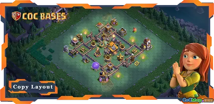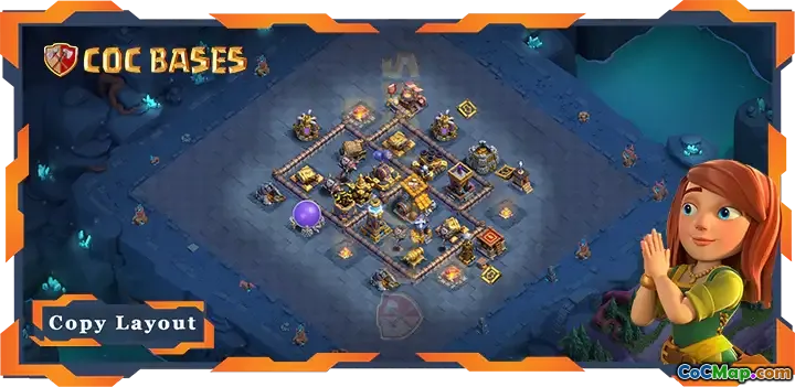 The Builder Hall Level 10 base design in Clash of Clans is strategically laid out to maximize defense and protect the builder hall from attackers. The core of this layout features the builder hall itself situated right in the middle, making it difficult for opponents to access directly. Surrounding the builder hall are critical defensive structures such as a roaster, mega mines, firecrackers, a lava launcher, and crushers. This thoughtful positioning ensures that any enemy troops trying to reach the builder hall face significant challenges from various defenses.