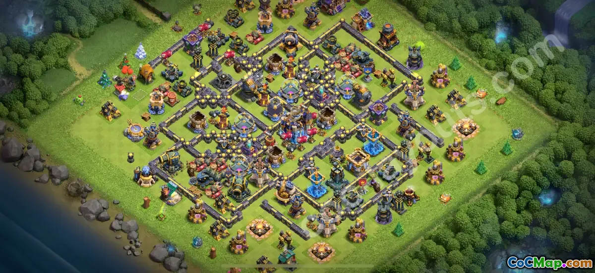 This Farming Base TH18 with Link is specifically designed to maximize resource protection and minimize loot loss during raids in Clash of Clans 2025. Its well-organized layout strategically places storages and resource collectors within a layered defense setup, making it difficult for attackers to raid efficiently or steal significant resources.