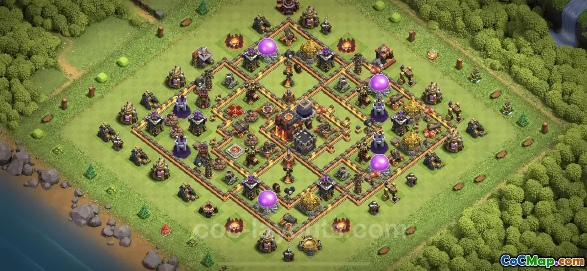 Discover the ultimate Trophy Base for TH10 in Clash of Clans! Secure your trophies with this anti-air, hybrid design. Copy now!