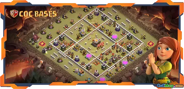 This top TH11 base layout is specifically crafted to maximize defense against multiple attack strategies, making it a reliable choice for clan war leagues and trophy pushing. Its well-balanced design features centralized key defenses, a robust compartmentalization, and strategic placement of traps to counter common attack methods. The layout's unique structure ensures that attackers find it difficult to achieve 3-star attacks, providing strong protection for your resources and trophies.