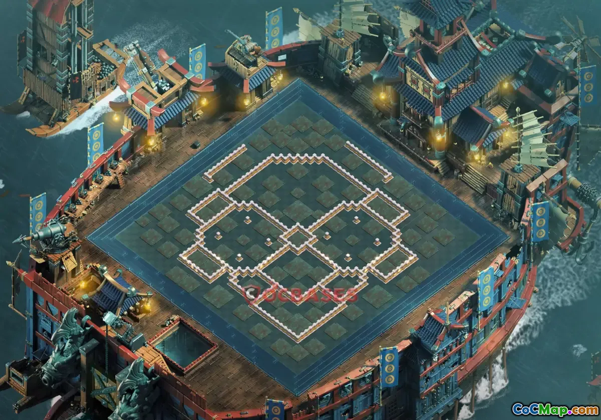 Designed for both farming and clan wars, this hybrid layout balances defensive strength with offensive flexibility. The included copy base link allows players to quickly replicate the design, making it ideal for Clan Wars and farming sessions. Use this layout to strengthen your defenses while maintaining the ability to launch effective attacks.