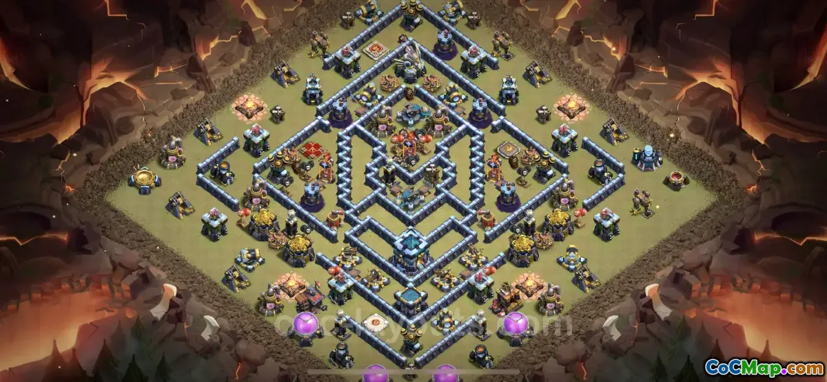 The Anti 3 Stars TH13 War Base utilizes various defensive structures to create a challenging environment for attackers. By strategically positioning key defenses, the base can effectively counter aerial assaults while also fending off ground units. The layout is not only about defense; it also incorporates placement strategies that create paths for attackers, causing them to waste time and resources while navigating through the base. This focus on defensive robustness gives players a better chance of securing wins in competitive clan events.