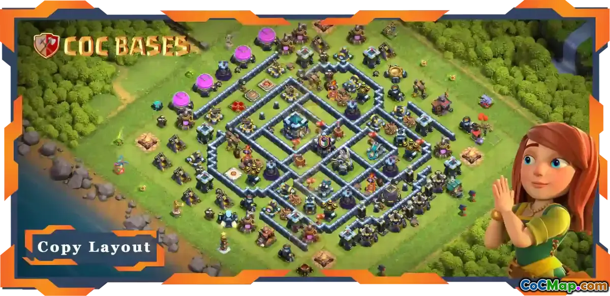 The Top Base TH13 in Clash of Clans has been strategically designed to offer exceptional defense against various attack styles. One of the main features of this layout is its ability to withstand attacks from different types of troops and tactics. The base has been crafted to keep vital structures well-protected while simultaneously creating a challenging environment for attackers to navigate. By focusing on an anti-air framework, it becomes particularly effective against aerial units that are commonly used in high-level gameplay.