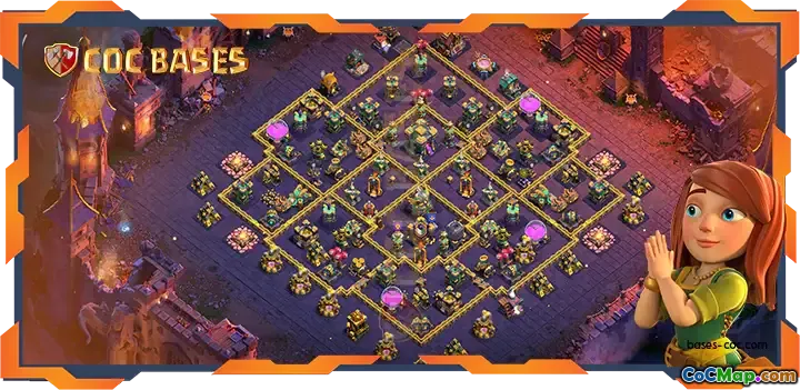 Additionally, this layout is optimized for trophy pushing, combining high defensive stability with compact design to maximize resource protection. Its structure promotes effective funneling, making it harder for attackers to reach key defenses and achieve star-winning attacks. Ideal for players seeking a balanced, resilient base, this layout is a perfect choice for maintaining dominance in competitive Clash of Clans gameplay.