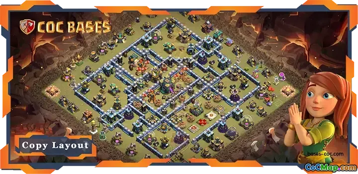 The walls encircling the town hall and the inferno towers are another significant aspect of the layout. These walls are intended to slow down and limit the movement of enemy troops, giving defensive structures more time to eliminate them. Proper wall placement can create choke points, making it harder for the attacking player to reach the village's critical structures.