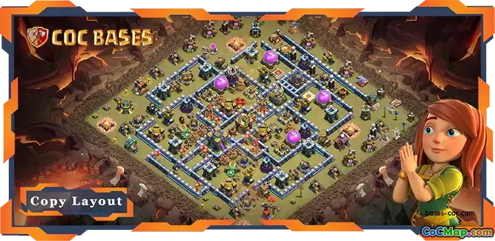 The TH14 war base layout for Clash of Clans is specifically designed to enhance defense capabilities, particularly against air attacks. The placement of key defensive structures is crucial, as it ensures that the base can withstand assaults from enemy troops. In this layout, the town hall is strategically positioned in the center, creating a fortified core that makes it difficult for attackers to reach the primary target. This central placement of the town hall not only protects it but also ensures that enemy units will have to deal with multiple defensive structures when attempting to destroy it.