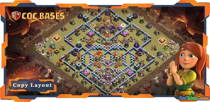 The layout is thoughtfully designed to incorporate various sections that work together cohesively. By integrating the Town Hall with the inferno tower and builders’ huts, it becomes a fortified zone that can withstand heavy attacks. Additionally, the design may feature varied defensive structures in adjacent sections, ensuring robust coverage against attacks from different angles.