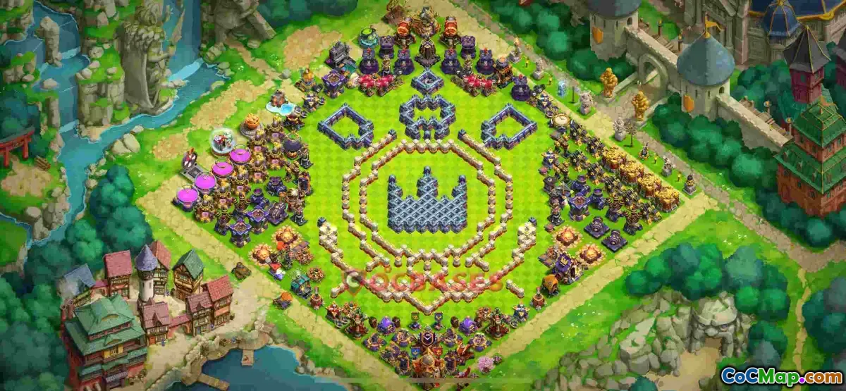 This Town Hall 16 base layout with ID tkljn offers a balanced design suitable for various gameplay styles, including war, farming, and trophy pushing. It emphasizes strong defenses and strategic placement of traps and walls to deter attackers and protect resources effectively.