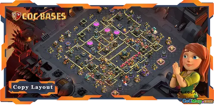 This top-tier TH17 base layout is optimized for Clan War League and WarCW battles, providing robust defenses against even the most aggressive attackers. Its strategic placement of walls, traps, and Clan Castle ensures maximum protection of key defenses and resources, making it challenging for opponents to achieve 3 stars.