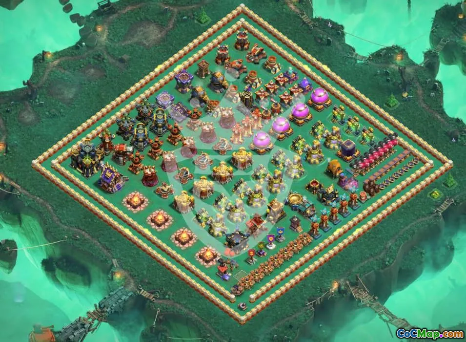This comprehensive Town Hall 17 (TH17) base layout is designed to offer maximum protection against attacks while maximizing resource retention and gameplay efficiency. Featuring well-placed defenses, strategic walls, and centralized Town Hall, this layout ensures that attackers face a tough challenge when attempting a raid.