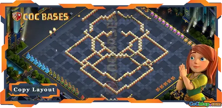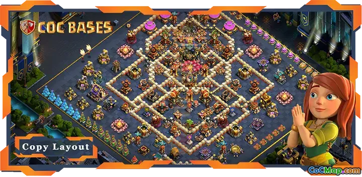 In this layout, the Town Hall is often centralized, surrounded by multiple defensive buildings that provide a layered defense. Key structures like the Eagle Artillery, Scattershots, and Inferno Towers are strategically placed to maximize coverage and deter ground and air attacks alike. Additionally, this base design often includes well-placed walls and compartments that slow down attackers and force them to use more troops, potentially leading to lower star ratings.