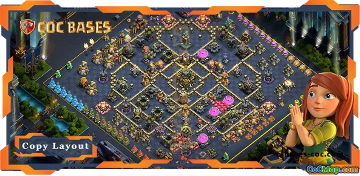 This TH17 trophy base layout is meticulously designed to maximize defenses and protect your trophies from various attack strategies. Its anti-everything approach ensures balanced coverage against air, ground, and hybrid attacks, making it suitable for high-level players aiming to climb or defend effectively.