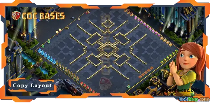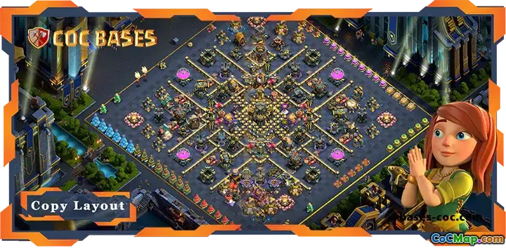 The design emphasizes centralized Town Hall protection complemented by well-positioned air and ground defenses, making it difficult for attackers to break through. The layout also includes funneling spots and well-placed Clan Castle for added resistance. Use the provided link to access the full, detailed layout and copy it directly to your game for maximum defensive strength.