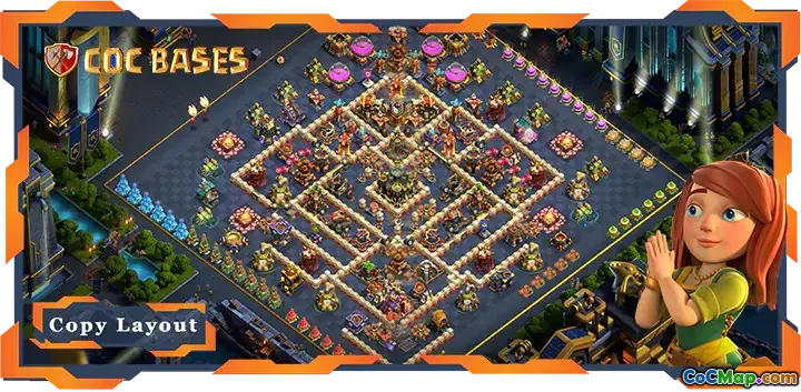 This anti-2 star layout primarily focuses on the central placement of the Town Hall, surrounded by strong defenses. The defensive buildings are strategically placed to cover a wide area, forcing attackers to commit significant resources to reach the Town Hall. Additionally, the design often includes various traps, such as Bombs and Spring Traps, which can catch attackers off-guard, slowing down their assault and disrupting their attack strategies.