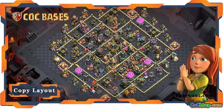 Additionally, this layout provides comprehensive protection against popular attack methods like Lavaloon, B.A.S.E., and Queen Walks. The arrangement maximizes the defensive potential of defenses and heroes, ensuring your base can withstand even skilled attackers. This layout is highly recommended for players looking to boost their war performance and secure more defense stars without sacrificing accessibility. Download the link to implement this optimized TH17 war base now and elevate your Clan’s defensive game.