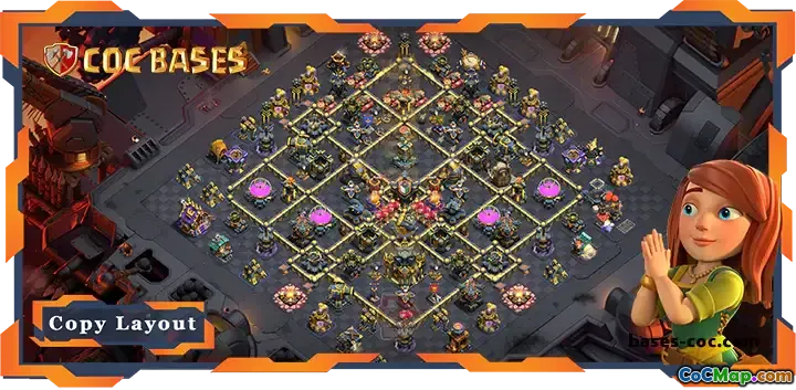 Designed for effective protection during multiplayer battles, this layout employs well-placed compartments and traps to distract and eliminate attacking troops efficiently. Its tested design ensures durability against common attack strategies, providing a reliable defense for your war clan. A direct link to the base layout facilitates easy copying and customization for your specific needs in Clash of Clans.