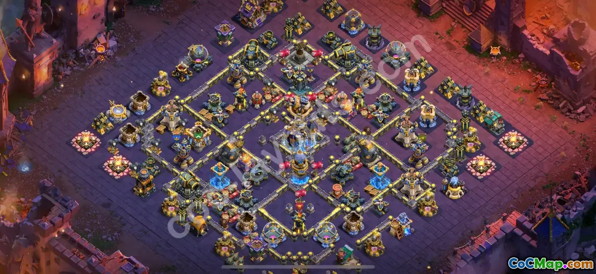 This comprehensive TH18 war base layout is specifically designed to maximize defense against two-star attacks in Clash of Clans 2025. Featuring a strategic placement of defenses, splash damage, and traps, it effectively neutralizes common attack strategies used by top clans during CWL wars.