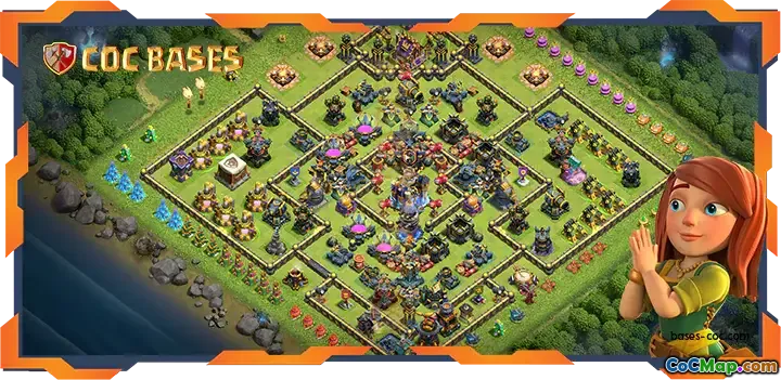 This top-tier TH18 farming base layout is meticulously designed to maximize resource protection while maintaining strong defenses against various attack strategies. Its hybrid structure combines effective walls, well-placed traps, and strategic troop placements to ensure a balanced defense against both ground and air assaults.