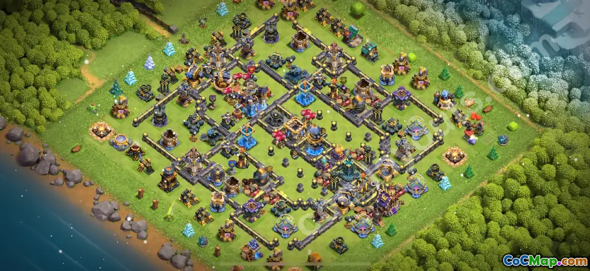 With the included link, this base layout is easy to copy and deploy, ensuring quick setup for your Clash of Clans 2025 season. The design maximizes defensive capabilities of Town Hall 18 structures and troop placements, making it a formidable opponent in both trophy pushes and hybrid defense scenarios. Use this layout to maintain your trophy count while safeguarding your resources efficiently.