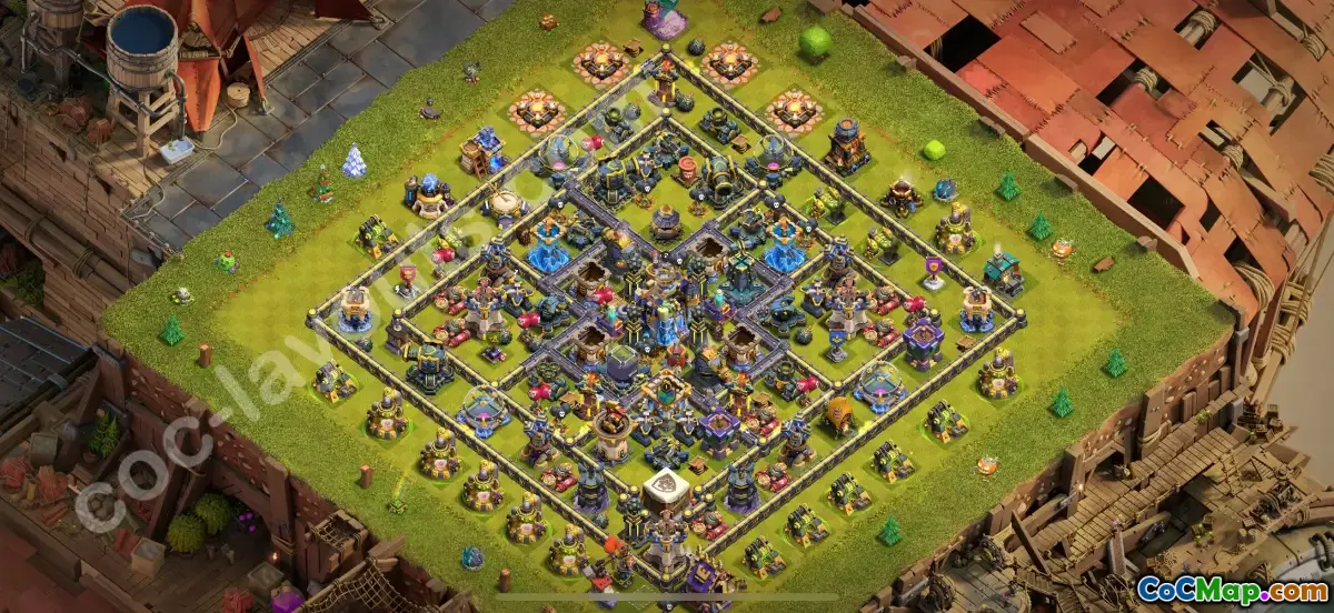 This hybrid Trophy Defense Base for Town Hall 18 in Clash of Clans 2025 is designed to maximize trophy retention while offering robust protection against attackers. The layout strategically positions key defenses and traps to disrupt enemy attack strategies, making it ideal for players aiming to climb the trophy ladder efficiently. The base's modular design also ensures it performs well in both offensive and defensive scenarios, providing a balanced protection setup.