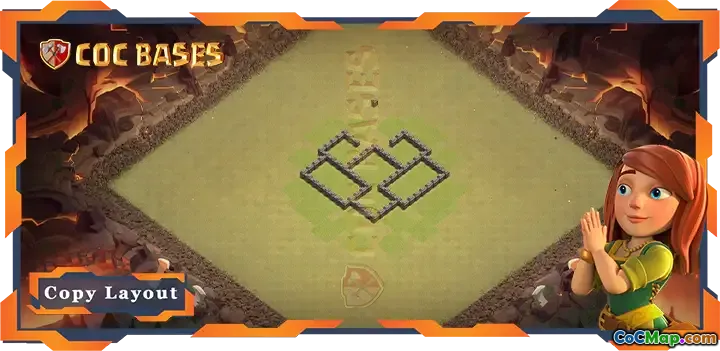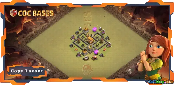 This top TH4 base layout is optimized for WarCWL and general defense, featuring strategic placement of defenses and walls to protect resources and Town Hall. Its design ensures that attackers face a challenging obstacle course, making it harder to reach the core and secure victory.
