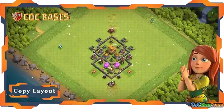 The layout incorporates anti-everything features, including well-placed traps and walls that hinder attackers from reaching critical resources. This base effectively combines defensive strategies to counter multiple attack types, making it a reliable choice for TH4 players seeking to maximize their resource gains while minimizing losses. The accompanying link provides easy access to the ready-to-use base layout, ensuring quick implementation and effective defense.