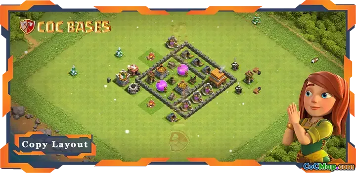 With an easy-to-follow design, this base layout is perfect for farming at maximum TH4 levels. The included link allows players to quickly implement the layout, ensuring their resources are well protected during raids. This setup promotes continuous farming success and offers a robust foundation for upgrading troops and defenses efficiently.