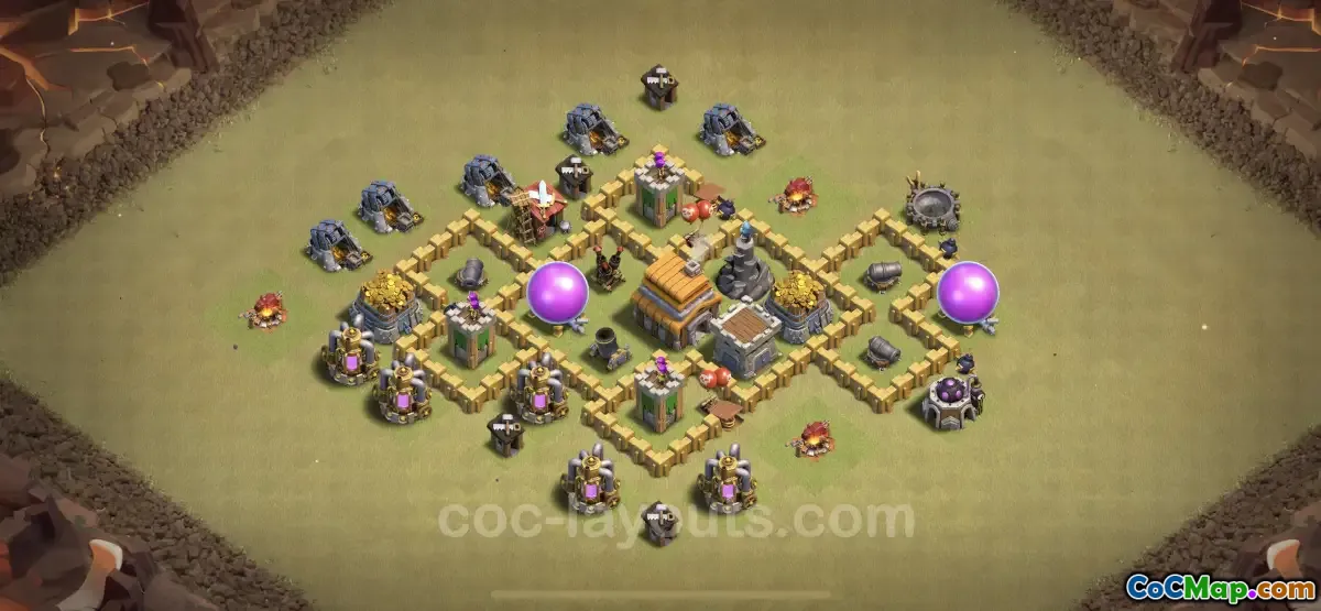 The TH5 base layout emphasizes anti-everything features, meaning it is built to withstand attacks from all kinds of troops and strategies. This design takes into account the common tactics used by opponents at this level and incorporates defenses that can counteract their moves effectively. The layout is constructed in a way that minimizes vulnerability while maximizing the potential to inflict damage on attackers.
