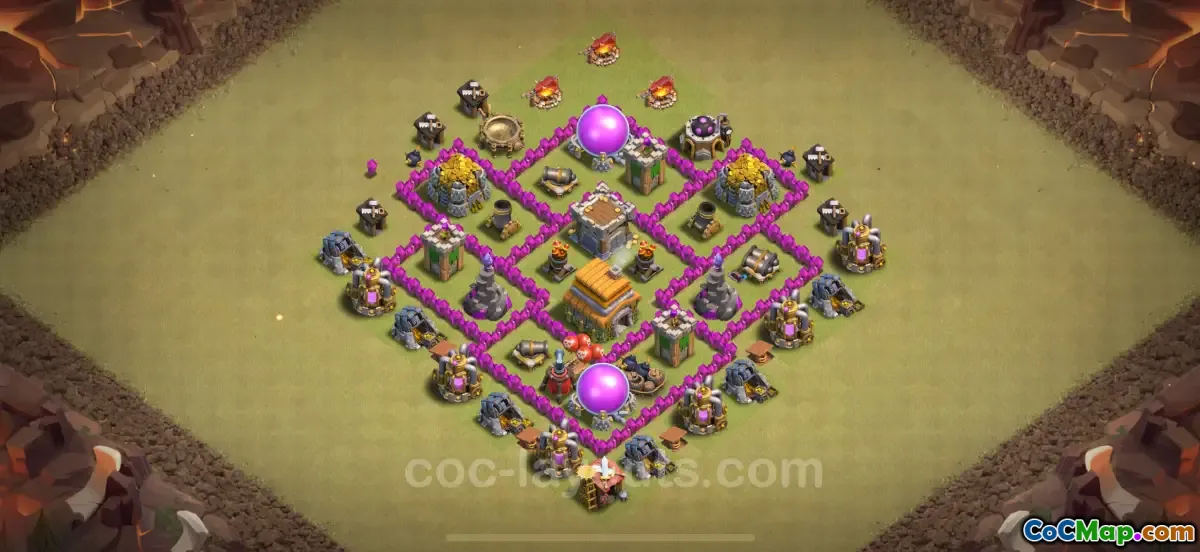 In Clash of Clans, building a strong defensive base is crucial for protecting your resources and trophies, especially at Town Hall 6 (TH6). A hybrid base layout is often recommended for players looking to balance their defense against both farming and war attacks. The goal of these layouts is to ensure that all key components, such as resource storages and Town Hall, are well protected from enemy raids while also being functional for competitive play in clan wars.
