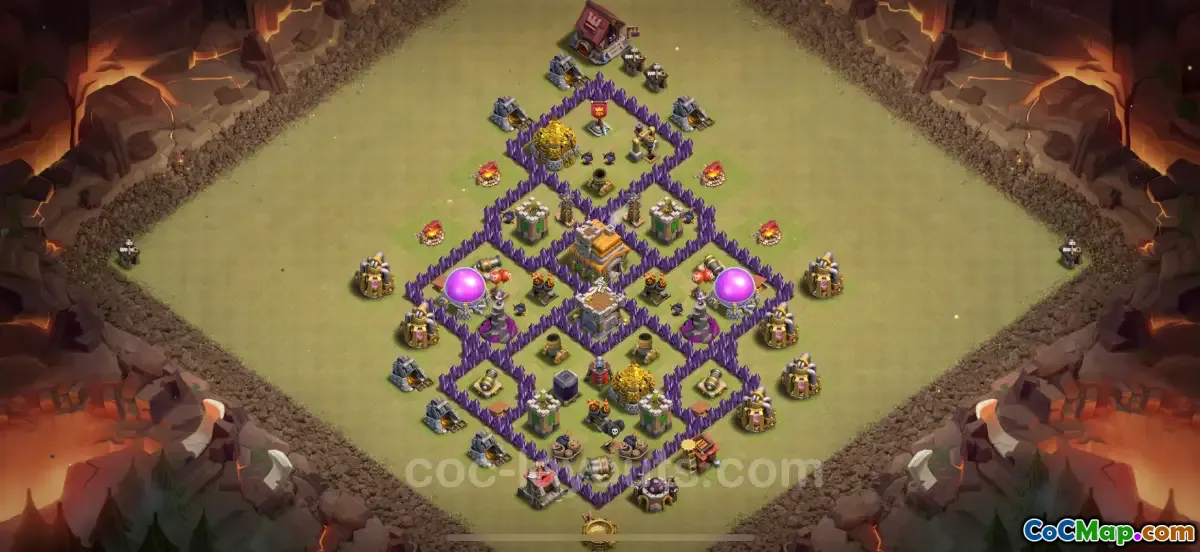 The layout of a TH7 base often includes centralized defensive structures, such as archer towers and cannons, which act as the first line of defense. Additionally, the Town Hall itself is positioned within the inner part of the base, often surrounded by defensive buildings. This makes it harder for attackers to achieve two-star victories. Players are encouraged to utilize walls effectively to create compartments, making it difficult for enemy troops to reach key structures quickly. Traps can also be placed to surprise attackers, enhancing the chances of a successful defense.