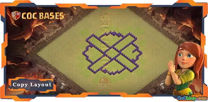 Included in this base is a shared link for easy deployment and adaptation. Its strategic placement of walls and traps creates strong choke points, while the placement of key defenses like the Archer Queen and Clan Castle ensures robust protection against advanced attacks. Perfect for competitive clan wars, this layout provides a balanced defense that adapts to different attacking strategies.