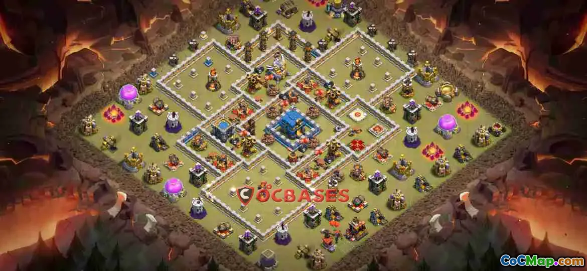 Discover the ultimate Town Hall 12 trophy base for Clash of Clans! Featuring anti-2 star strategies, a Lava Hound CC, and asymmetric design for unbeatable defense.
