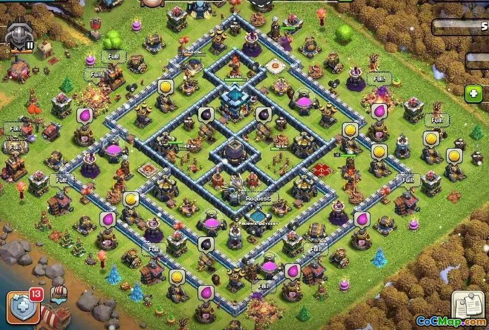 The Clash of Clans Base Layouts for Town Hall 13 are designed to offer strategic advantages in both attack and defense. A well-structured base layout can help protect your resources, prevent easy trophy losses, and provide a strong defense during clan wars. Base designs for TH13 often incorporate layers of defenses, such as walls, traps, and defensive buildings, to create an effective barrier against enemy attacks. The layout plays a crucial role in deterring aggressive raids, ensuring that players can maintain their resources and trophies more effectively.